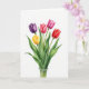 This design shows a watercolor bouquet of five rounded blossoms arranged closely in a clear glass vase, set against a white background that keeps the focus on the flowers 🌷. A deep purple flower leans to one side like a steady companion, while a warm yellow bloom nestles near its base as if sharing a quiet moment. On the other side, soft pink petals and a rich red blossom press in together, their overlapping edges suggesting closeness and easy friendship. Broad green leaves fan out around the stems, and the light, see-through paint lets the petals look airy and gently layered. Through the glass, thin stems crisscross and bend, adding a tender, intertwined look that feels almost like a small embrace 🐇. The greeting sits near the top in a light gray tone, with a smaller line of text centered below the vase in the same color. The vase is outlined with pale blue-gray washes, and faint reflections pool at the base where the stems meet the water line.