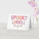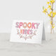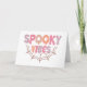 Ce design amusant et festif d'Halloween présente la phrase « Spooky Vibes » dans une police ludique et dégoulinante qui donne au texte un effet gluant et inquiétant. Les mots sont remplis de teintes pastel douces de rose, d'orange, de violet et de pêche, ajoutant une touche légère et fantaisiste au thème effrayant. Sous le texte, une simple illustration de toile d'araignée de couleur marron clair ajoute une touche classique d'Halloween, reliant le design. La combinaison des couleurs pastel et des éléments effrayants crée un contraste unique qui est à la fois mignon et un peu effrayant, ce qui le rend parfait pour Halloween.