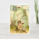 Carte de voeux vintage/victorienne de Pâques de Français. Cupidon adorable affilant ses flèches et se reposant devant un grand, fleuri oeuf de pâques ! Joyeuses Pâques ! Belle carte de Pâques de Français !