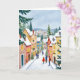 Cette carte de voeux présente un portrait peint d'un bas pittoresque décoré pour Noël.
