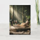 Carte Vin d'anniversaire et pain sur une table en forêt