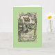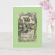 Illustration vintage d'une grenouille assise sur les genoux avec un chansonnier. Ses yeux sont tournés vers le haut et il lève un bras dans l'air alors qu'il chante fort avec une grande passion. Il est entouré d'une bordure de caleçons. Le verset sur le devant de la carte dit, "Si vous devez chanter, Chantez en solo - si bas !" L'intérieur de la carte est vide pour votre propre message.