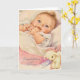 Envoyez vos sincères félicitations avec cette carte de félicitations vintage pour bébé fantastique. L'image présente un bébé doux avec le plus beau sourire qui est sûr de faire fondre les coeurs. Vous pouvez facilement entrer vos propres félicitations et nom de bébé. Vous pouvez modifier davantage le style, la couleur et la taille de la police.