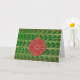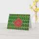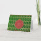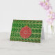 OEuvre originale composée d'un ornement de Noël d'art graphique avec un motif de mandala vintage dans les tons rouges, posée sur un motif arrière - plan de branches vertes d'arbres de Noël contemporains. Il y a des vignes rouges en filigrane en haut et en bas de la carte. La carte est munie d'une bordure de texture glacée tout autour, ce qui fait une jolie carte festive. À l'intérieur de la carte déclare "Wishing you Love and Peace, Happiness and Joy. Joyeux Noël !" pour un salut de Noël sincère à tous. Vous pouvez ajouter plus de texte que vous le souhaitez ou laisser tel quel !