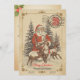 Envoyez des voeux de vacances chaleureux avec cette carte de Noël vintage! Le Père Noël, les rennes et les pins dessinés à la main sur du papier crème vieilli à la texture enneigée, des bordures décoratives anciennes et des timbres postaux classiques sont présents. Idéal pour des vacances nostalgiques, un décor saisonnier et des fêtes festives. Texte personnalisable à l'avant et à l'arrière de la carte pour ajouter votre touche unique à cette belle carte de vacances. Partagez le charme intemporel de Noël avec votre famille et vos amis!