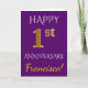 Carte Violet, Or Faux 1er Anniversaire de Mariage + Nom