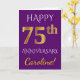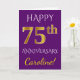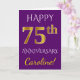Carte Violet, Or Faux 75e Anniversaire de Mariage + Nom