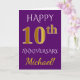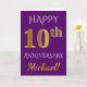 Cette carte de vœux d'anniversaire de mariage simple et personnalisée comporte le message "Joyeux 10e Anniversaire de Mariage", le "10e" ayant une apparence dorée imitation. La couverture comporte également un nom personnalisé et un fond violet. L'intérieur comporte un message de vœux d'anniversaire de mariage personnalisé. Cela pourrait être offert à un mari ou une femme pour célébrer le dixième anniversaire de mariage du couple. [~Z0000089]