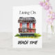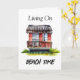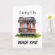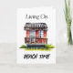 Restez en contact avec cette carte de plage avec une maison de plage au style aquarelle plante tropicale, avec la citation drôle, "Living on Beach Time". Ai art. génomique