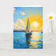 Souhaitez à quelqu'un un un anniversaire paisible et serein avec cette carte d'anniversaire à thème de voilier. Cette carte présente une belle illustration d'un voilier naviguant paisiblement devant un joli coucher de soleil. L'art est réalisé dans un style de peinture à l'huile d'impasto.