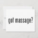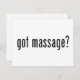Façonné après cette publicité très populaire, nous avons ce design super mignon "Get Massage?" sur des tonnes de produits pour que vous puissiez l'utiliser sur vos cartes de visite de massage, de cartes de remerciement, ou de donner comme cadeaux clients. Disponible en noir ou blanc cassé.