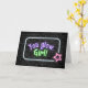 Panneau de néon violet et vert brillant avec étoile rose sur un mur en brique foncée pour un anniversaire.