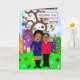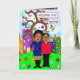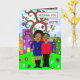 Pensez à vous et ratez votre carte pour un ami. Whimsical dessiné à la main style folklorique fantaisie fleurs, arbre et amis.