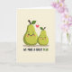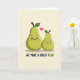 This sweet card features two adorable pear characters sharing a loving moment. At the center are two bright lime-green pears, each topped with a small brown stem and a leafy accent. The larger pear on the left has wide, happy eyes, a big smile, and soft pink blush on its cheeks. Beside it, the smaller pear looks calm and content, with closed eyes, long eyelashes, and the same rosy blush. A small pink heart floats gently between them, symbolizing their close bond. The soft off-white background keeps the focus on the cheerful green and pink colors. Below the pears, bold dark lettering reads “WE MAKE A GREAT PEAR,” with the word “PEAR” highlighted in matching green. With its fun pun and warm design, this image is perfect for sharing Valentine’s Day love ❤️💌🍫.