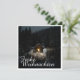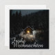 Die Karte zeigt eine stimmungsvolle, winterliche Szenerie mit einer kleinen, beleuchteten Holzhütte inmitten eines verschneiten Waldes. Die warme Lichtquelle im Inneren schafft einen schönen Kontrast zur dunklen, friedlichen Umgebung. Der elegante "Joyeux Noël"-Schriftzug in Weiß verleiht dem Motiv eine festliche Note. 🎄 ✨ Deutsch