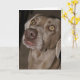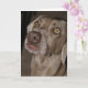 Un Weimaraner attentif qui regarde sur une carte de voeux au format vertical avec "I Love You" à l'intérieur.