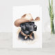 Envoyez un sourire avec cette charmante carte de voeux vierge avec un Labrador noir vêtu dans le style cowboy. Avec un look d'aquarelle douce et une touche occidentale détaillée, y compris un casquette de cowboy tan et un bandana, cette carte est parfaite pour les amoureux de les chiens, les amateurs de country et toute personne qui apprécie un peu de charme rustique. Idéal pour les anniversaires, les notes de remerciement ou la correspondance quotidienne, cette carte est vide à l'intérieur afin que vous puissiez écrire votre propre message sincère.