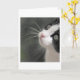 Cette carte sucrée pour les amoureux de les chats et les propriétaires de chats montre une photo de fond de l'adorable visage d'un petit chaton noir et blanc. Le chat est en train de regarder le ciel et a une expression très confiante sur son visage. Il est très fier de ses beaux whiskys et ce tournage de profil les montre en plein avantage!