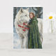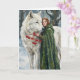 Carte White Wolf Redhead Druid Winter Berries Fantasy Ar