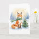 Carte Winter Fox with Green Scarf and Christmas Tree