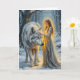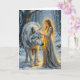 Embrace the magic of the frozen north with this breathtaking fantasy illustration. The artwork features a glowing winter maiden standing beside a majestic giant white wolf in a snowy forest. Rendered in a rich impasto oil painting style, the design radiates peace, protection, and the wild beauty of nature. It makes a stunning gift for wolf lovers, fantasy enthusiasts, or anyone who loves the spirit of winter. Use the design tool to add a name or a personal message to create a truly unique keepsake.