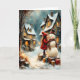 Carte Winterliche Dorfszene mit Mädchen und Schneemann