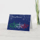 Chevaux rouges et verts trottant par des flocons de neige. Joyeux Noël sur l'extérieur, personnaliser avec votre propre salutation sur l'intérieur.