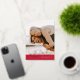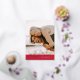 Cette carte de voeux minimaliste de la Saint-Valentin comporte une grande photo du client, ainsi que l'expression "XOXO" en gras, écrit à la main, et pressée avec de l'or ou de l'argent. Une simple bande de couleur permet au nom du client de rester lisible. L'arrière de la carte comporte un motif de coordination et typographique.