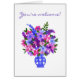 Une jolie carte "You're Welcome" avec un vase de fleurs rose et bleue, tirée d'un collage en papier peint à la main par Judy Adamson. Si vous souhaitez que le texte de couverture avant soit modifié de quelque façon que ce soit (par exemple un âge, une personne ou une langue différents), veuillez me contacter par l'intermédiaire de mon magasin et je serai heureux de le faire tout de suite.