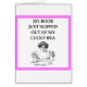 La livraison s'est bien passee, ma carte etait tres bien protegee par l'emballage. J'ai eue l'agreable surprixe de voir que la qualite de la carte est parfaite. Je donne un10 sur 10. Merci Zazzle, la carte est tellement belle, que j'ai decidee de la garder et de l'encadrer.Ainsi, je peux l'admirer chaque jour. Aussi, c'est pourquoi , j''ai commandee a nouveau .