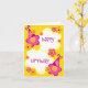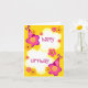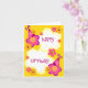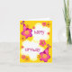 Cartes d'anniversaire personnalisables pour les filles avec une bordure d'une fleur rose et violette portant un casquette de fête d'anniversaire et le dicton Joyeux anniversaire.