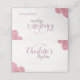 Cartes de visite pour ceux qui célèbrent les baptêmes. Ce design est habillé d'un arrière - plan blanc et décoré de pétales roses. Il peut être personnalisé au nom et à la date du baptême.