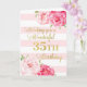 Joyeuse carte de 35ème anniversaire avec fleurs d'aquarelle rose, rayures rose vif et verset réfléchi.
