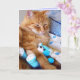 Carte blanche prête pour votre propre message avec un chat Maine Coon et son ours en peluche.