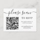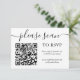 Une simple carte de boîtier RSVP script élégant avec votre propre code QR et les détails du site Web mariage mis en typographie chic et photo spéciale au verso. Conçu par Thisisnotme©