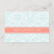 Insertions de carte de direction pour mariage dans élégant et moderne peach rose orange, clair pastel turquoise ciel bleu et blanc chic et classique floral damassé motif vintage. Customisez ces cartes avec vos indications mariages ou d'autres informations à inclure avec vos invitations de mariage, également parfait pour les fêtes d'anniversaire ou d'anniversaire. Disponible dans une large gamme de produits mariages correspondants.