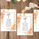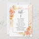 Aidez vos invités à trouver leur table avec cette élégante carte moderne de plan de sièges avec des noms de invités avec la pêche exquise et crème fleurie et champagne couleur aquarelle couleur crème. Cartes recto verso pour que les clients puissent regarder les deux, avant ou arrière pour voir leurs noms dans des affichages suspendus. Libérez de l'espace tout autour en vous donnant la liberté d'utiliser des clips ou un trou de perforation pour accrocher des écrans, ou d'utiliser le support/cadre de table. Cadre aux délicats détails floraux dans un beau mélange de teintes pêche, orange, rose vif, rose désertique et champagne crème. Détails de calligraphie manuscrite moderne. Plusieurs options de couleur. Ayez tous les numéros de table dans la même couleur ou mélangez les couleurs selon le thème de couleur de votre événement. Une partie de notre collection "Peach Floral Delight with Cream Champagne" avec une variété de produits de coordination disponibles, y compris des cartes de numéro de table et des menus. Visitez la collection entière à l'adresse suivante : https://www.zazzle.com/collections/peach_floral_delight_and_cream_champagne-119627301812293761