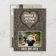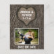 Cartes de Faire-Part de Mariage en Chêne Gravé Rustique de Campagne - avec un fond d'écorce de chêne imprimé et un cœur gravé sur le devant. Personnalisez avec votre propre photo.