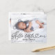 Joli faire-part de naissance photo calligraphie. Facile à personnaliser avec vos détails. Contactez-moi par conversation si vous avez des questions sur l'oeuvre ou avez besoin d'une personnalisation. VEUILLEZ NOTER : Pour obtenir de l'aide sur les commandes, l'expédition, l'information sur les produits, etc., contactez le service à la clientèle de Zazzle directement https://help.zazzle.com/hc/en-us/articles/221463567-How-Do-I-Contact-Zazzle-Customer-Support-.