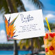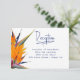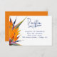 Cartes d'enceinte de mariage avec oranger oiseau de paradis design fleurs. Les cartes blanches ont une place pour le titre "Réception" en bleu foncé, police moderne. Le lieu et l'adresse de la réception sont imprimés. Cette conception est également disponible en téléchargement immédiat.