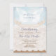 un design de carte d'invitation à la célébration du baptême pour un petit garçon avec ailes d'anges, imprimé vintage, polices de calligraphie et effet de dentelle de burlap.