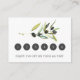Ces cartes de fidélité pour les affaires disposent d'une élégante branche d'olivier aquarelle. Utilisez les champs modèle pour ajouter vos coordonnées personnelles et vos informations de fidélité. La carte revient à une couleur verte à sauge solide avec vos informations personnalisées. Pour voir ma ligne complète visiter www.zazzle.com/dotellabelle Art et design par Victoria Grigaliunas cartes de fidélité, salon, cartes perforées, client,