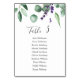 Cette carte de sièges à double face en lavande rustique est parfaite pour un mariage extérieur simple et élégant. Le design floral présente des feuilles d'eucalyptus aquarelle et de la verdure avec des sprigs de fleurs sauvages violets. Customisez et ajoutez chaque numéro de table dont vous avez besoin à votre panier individuellement.