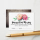 Ces cartes de jeu de devinette pour les baisers à fleurs rustiques sont une activité amusante pour une douche de nuptiale sur le thème floral country. Remplissez un pot avec les baisers d'Hershey et demandez à vos invités de deviner combien de bonbons il y a dans le pot. La réponse la plus proche gagne un prix ! Le design présente une élégante composition de pivoines aquarelles roses blush avec un fond texturé en bois.