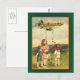 Image d'art irlandais mignon d'enfants dans un champ, avec un dirigeable (zeppelin ? blimp ?) au-dessus, éparpillant des shamrocks à travers le paysage. Envoyez les salutations de la St. Patrick à vos amis et à votre famille, ou ajoutez du texte pour créer une carte d'anniversaire personnelle de la St. Patrick ou d'autres salutations.