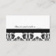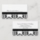 Customisez cette jolie carte de table mariage damassé en noir et blanc avec un design en ruban noir. Personnalisez-le avec le nom de la mariée et du marié et un message spécial sur le dos. Design © Chrissy H. Studios, LLC. Tous droits réservés.