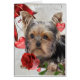 Yorkshire Terrier pose avec des coeurs et des roses pour la maman dans celle-ci d'une carte de Noël aimable parfaite pour le jour de mère ou le jour de Valentines.