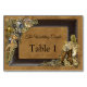Mariage gothique steampunk - or et laiton sur texture de daim avec un cadre en cuir sombre - cartes de numéro et de nom pour chaque table