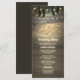 Cartes de menu de mariage Cœurs dans le sable sur la plage - présente un beau design de lumières scintillantes enfilées à travers les palmiers et une plage élégante avec des cœurs de sable que vous pouvez personnaliser pour un caractère unique. Le design présente également un arrière-plan de rivage avec des vagues.