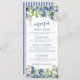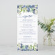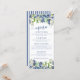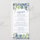 Cartes de menu mariage bleu à l'aquarelle fleurie bleutée et élégante.